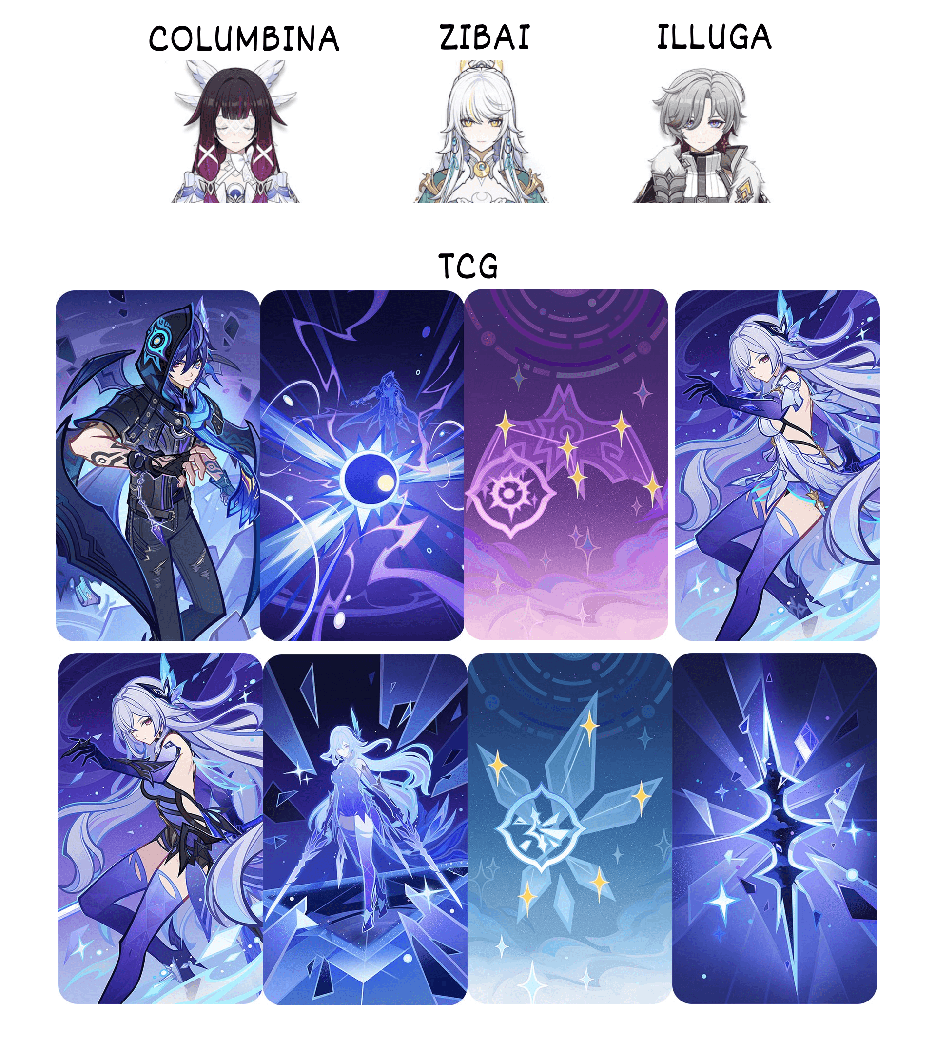 La versión beta revela nuevos iconos de avatar que apoyan la identidad visual del elenco. El icono de avatar de Zibai presenta un estilo nítido que resalta su cabello de tono claro y su mirada decidida. El icono de avatar de Illuga muestra una expresión segura con formas angulares que realzan su identidad de duelista. El icono de Columbina utiliza una paleta de colores suaves apoyada por acentos acuáticos que coinciden con su rol de catalizador Hydro. Estos activos muestran una dirección artística cohesiva que ayuda a los jugadores a conectar visualmente con los nuevos personajes.