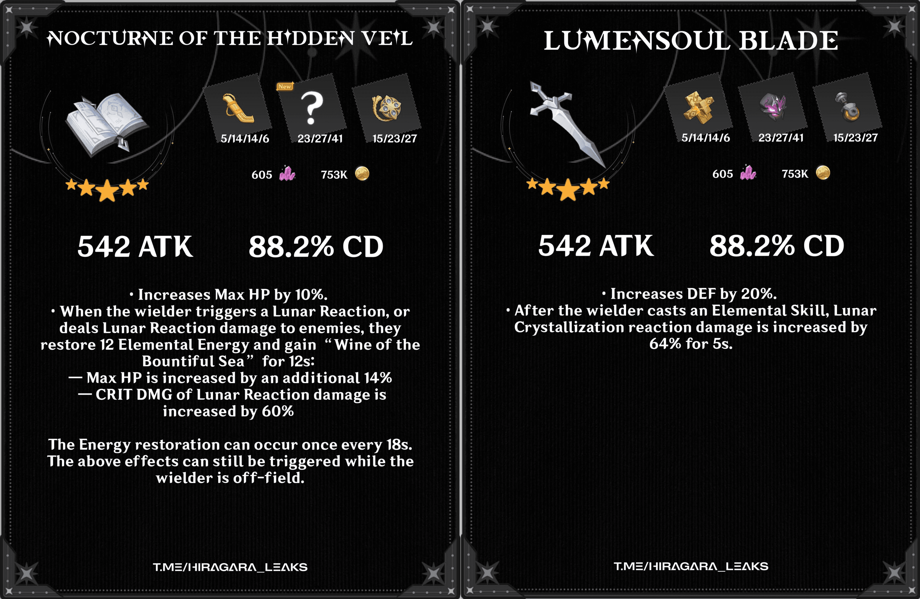 La inclusión de escalado de crítico, escalado de defensa y escalado de Reacción Lunar sugiere que las builds meta se basarán en la frecuencia de reacción en lugar de la acumulación pura de ataque. Estas armas también soportan la activación fuera del campo, asegurando que los personajes puedan contribuir con daño y utilidad sin permanecer en el campo.