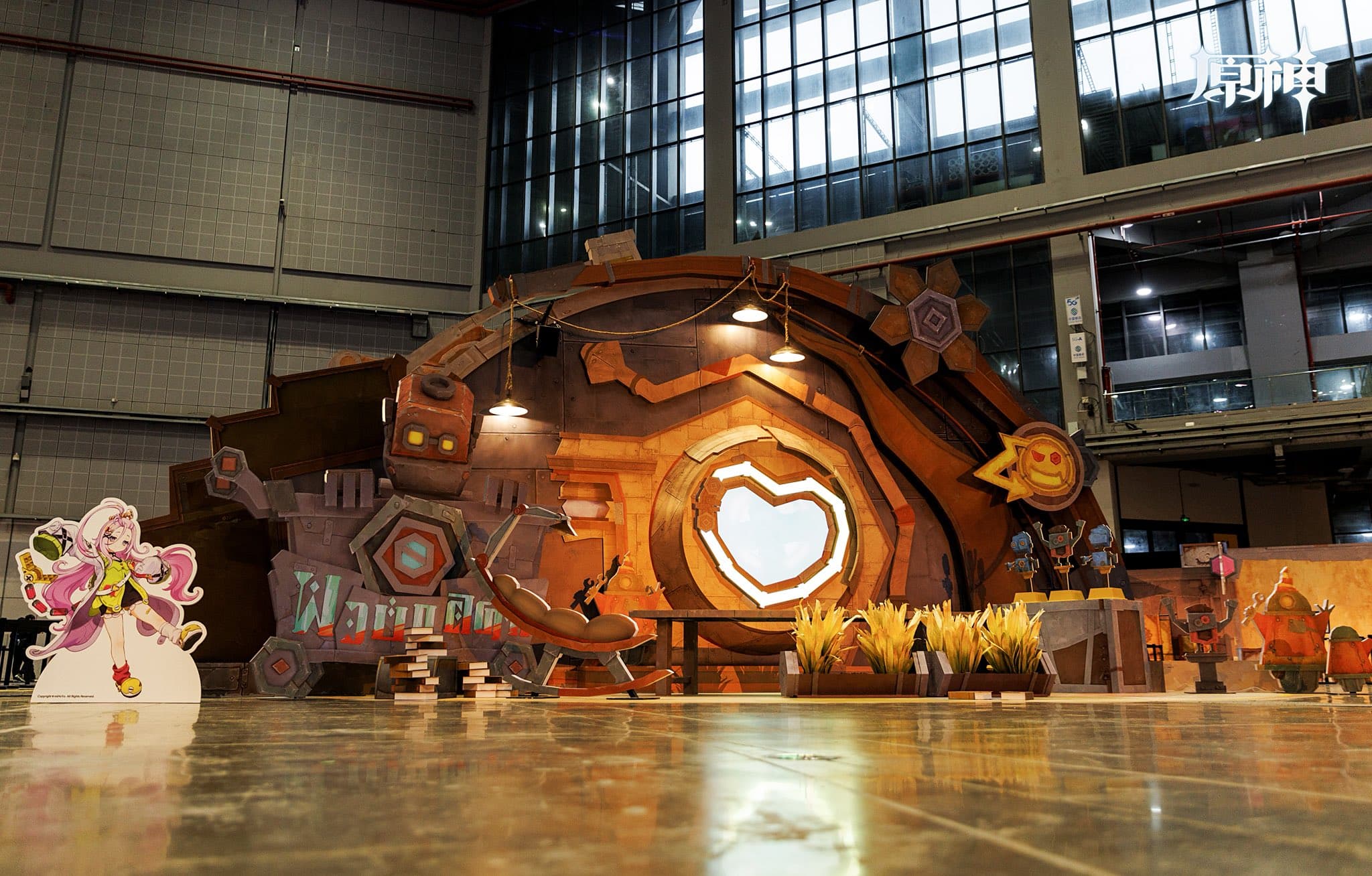 Otra instalación popular presenta el juguetón globo de Paimon, que muestra el humorístico aviso “Bajo la ley de Fontaine, los objetos voladores están prohibidos en la Ciudad de Fontaine durante los primeros 3 días de cada mes.” Esta referencia desenfadada refleja la mezcla característica de lore y humor de Genshin Impact, convirtiéndola en un lugar favorito para tomar fotos entre los asistentes.