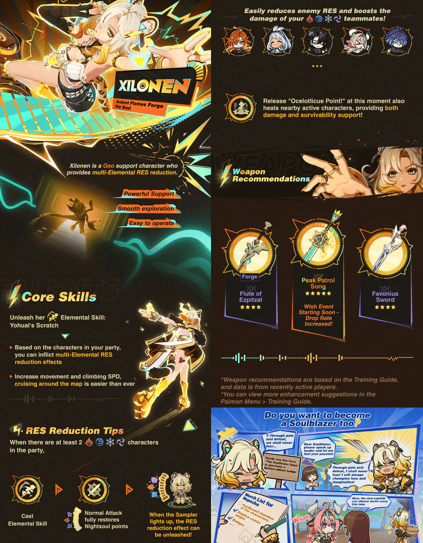 Durante el gachapón de evento «Bendición de la Forja Ardiente», Xilonen (Geo) recibe un gran aumento en su probabilidad de obtención, convirtiendo esta en la mejor oportunidad para conseguirla desde su debut. Como personaje exclusivo de evento, Xilonen no se añadirá al gachapón permanente «Pasión por viajar», lo que refuerza la naturaleza limitada de este banner.